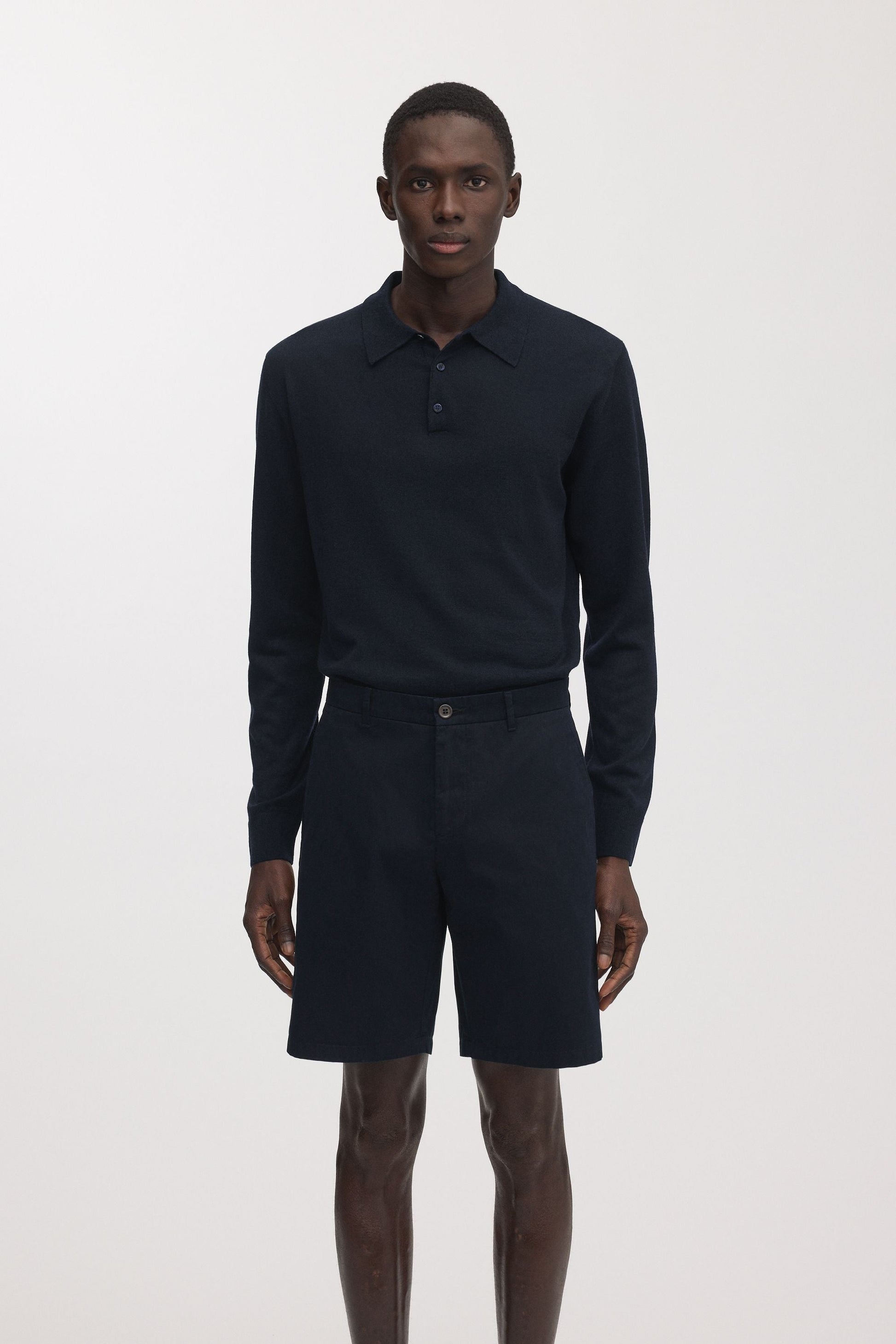 Regular fit shorts made from 100% organic cotton twill with a clean waistband, slanted side pockets and jetted back pockets. Cut and sewn in Portugal.