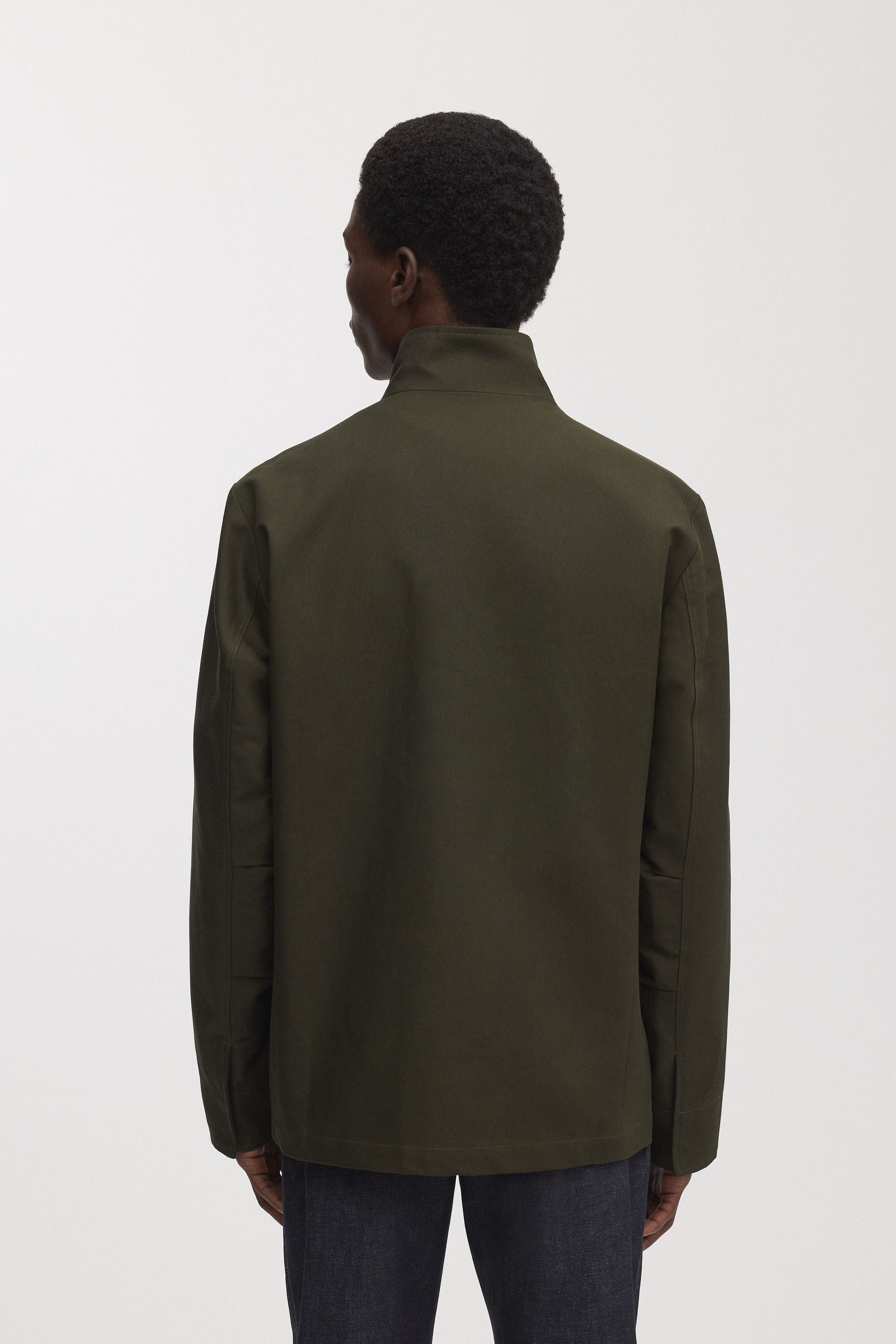 100% organic cotton. Water-repellant 270gsm double twill weave with front pockets, hidden zip and snap button closure. Woven, cut and sewn in Portugal. Available in three lengths.