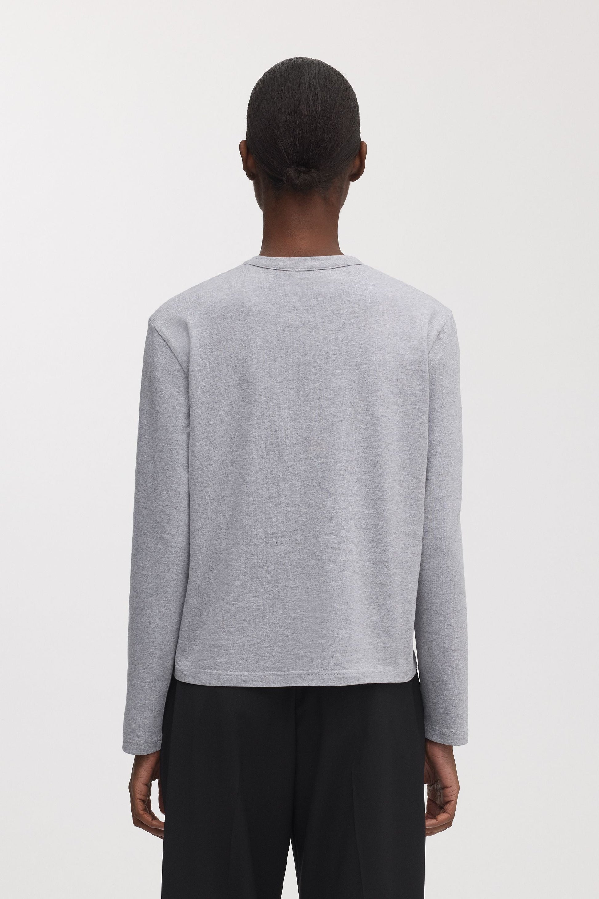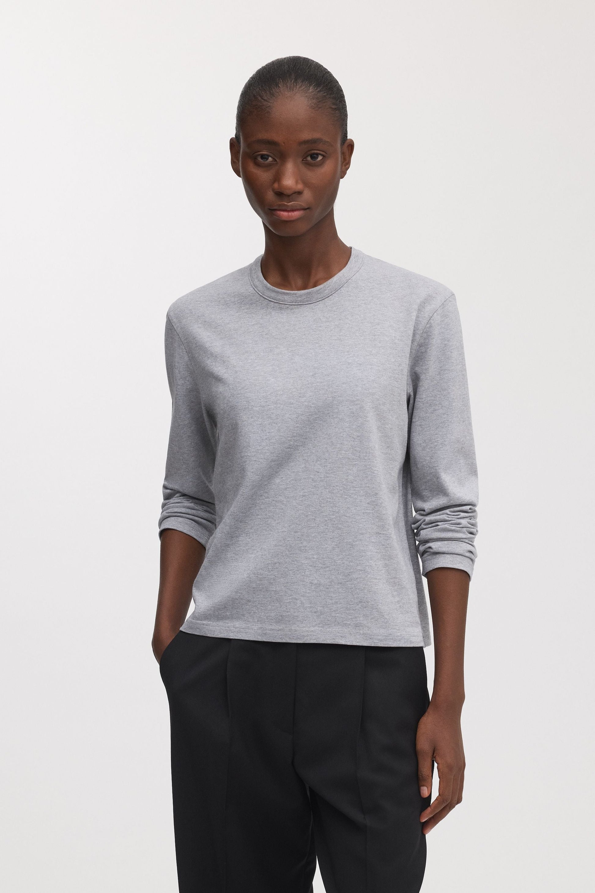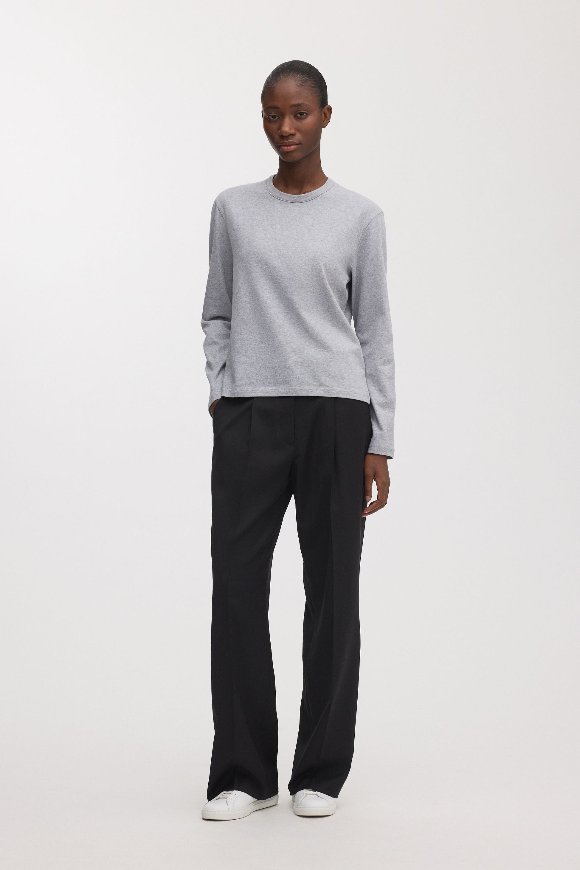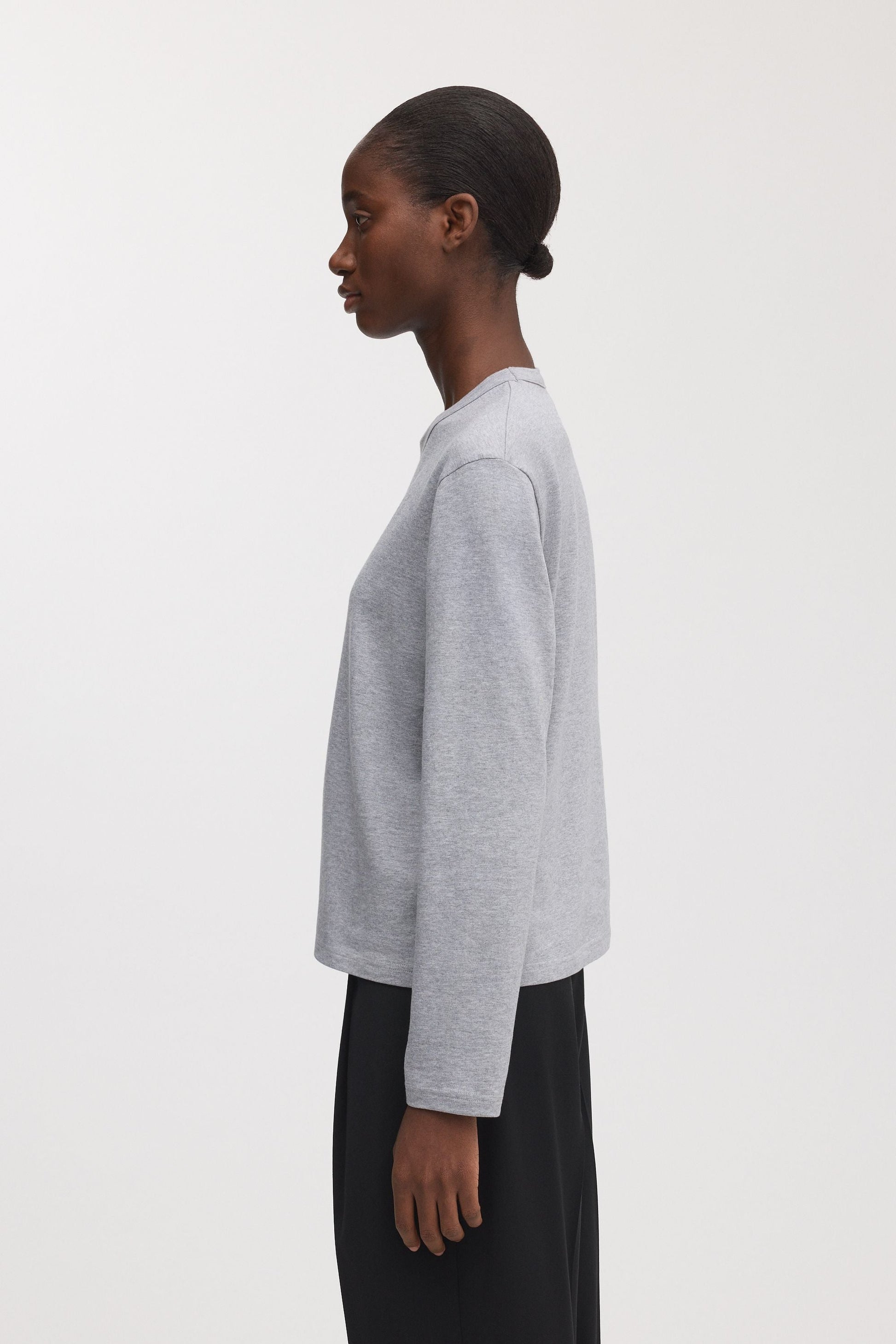 A classic women’s long sleeve crew neck T-Shirt made from 100% organic medium-staple cotton with a dry handfeel and structured elevated neckline. Milled, cut and sewn in Portugal.