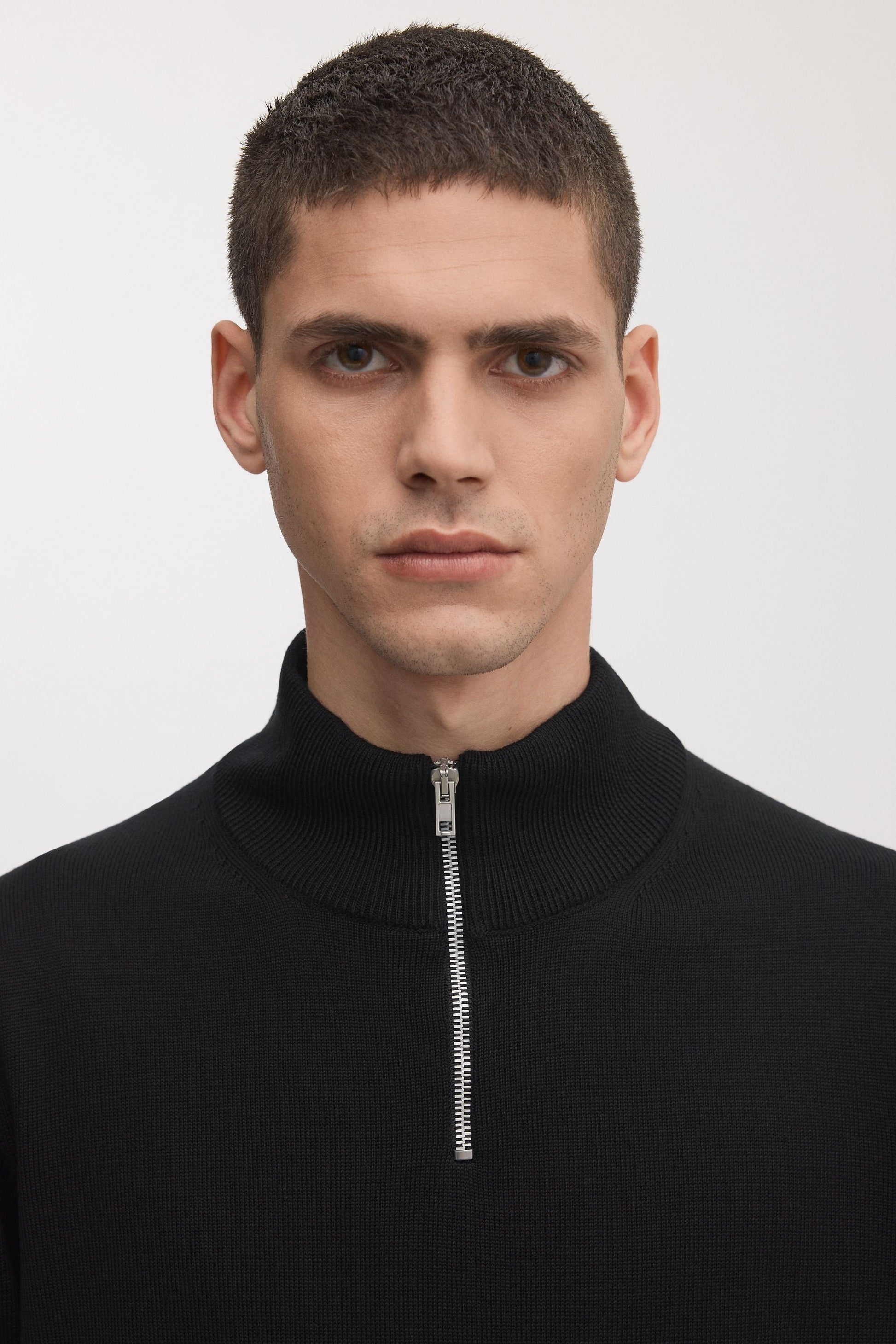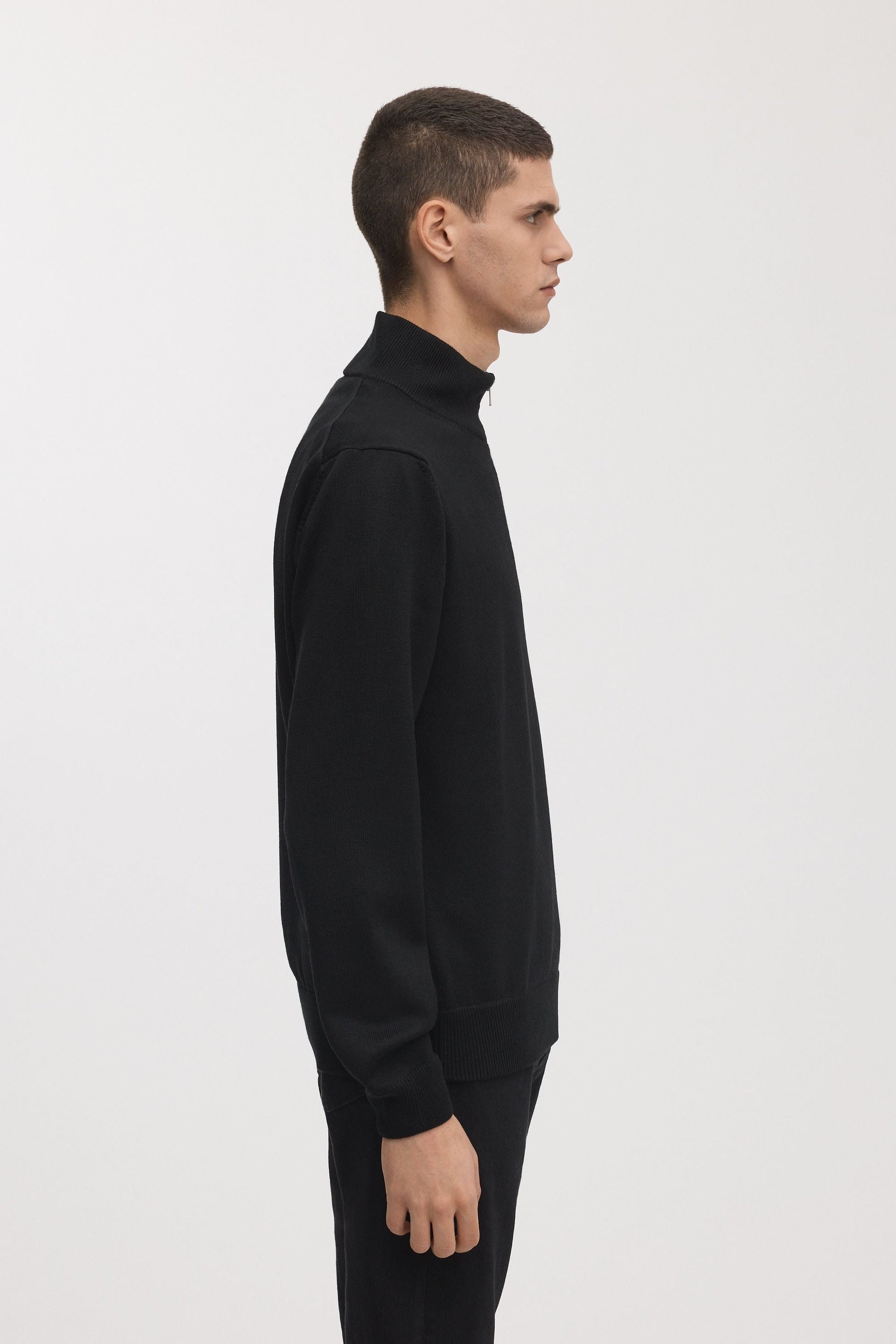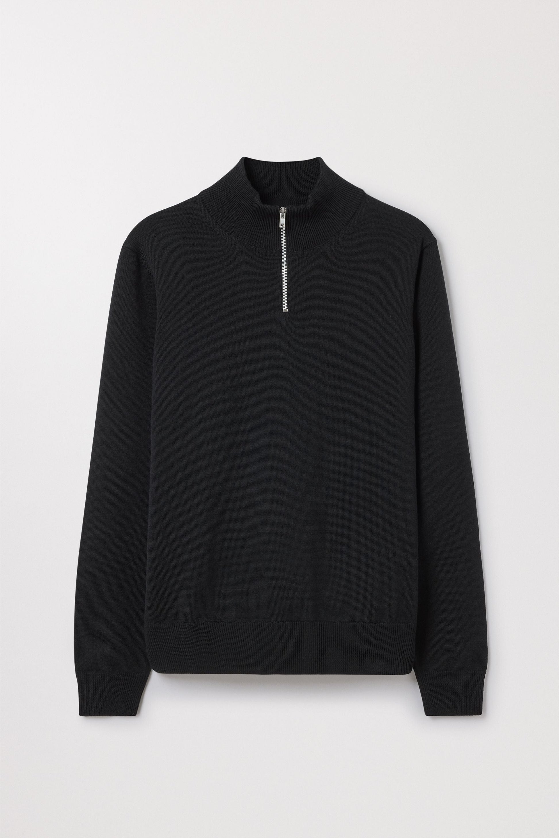 A versatile half zip sweater made from 100% extra-fine merino wool. Knitted in a lightweight to midweight construction with ribbed trims for comfort and durability. Yarn milled in Italy, knitted in Europe.