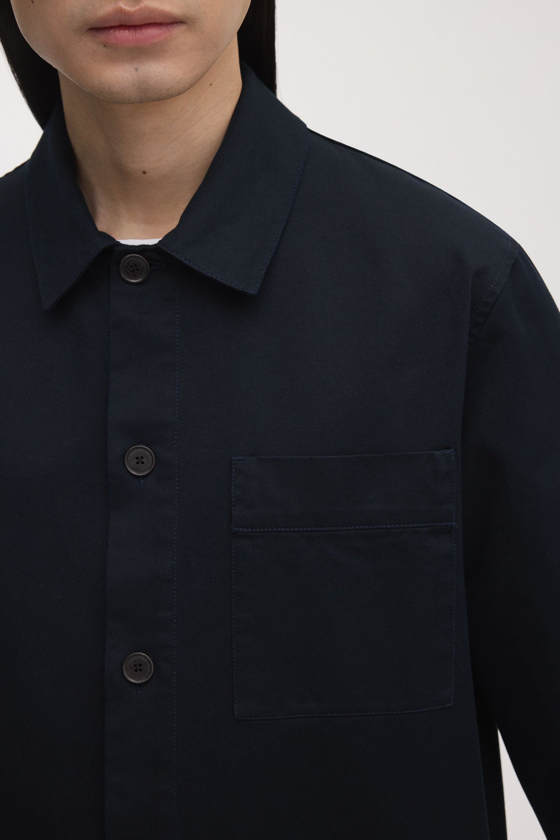 A structured overshirt made from heavyweight organic cotton twill. Designed with a regular fit, button-front closure and two chest pockets. Ideal for layering. Made in Portugal.