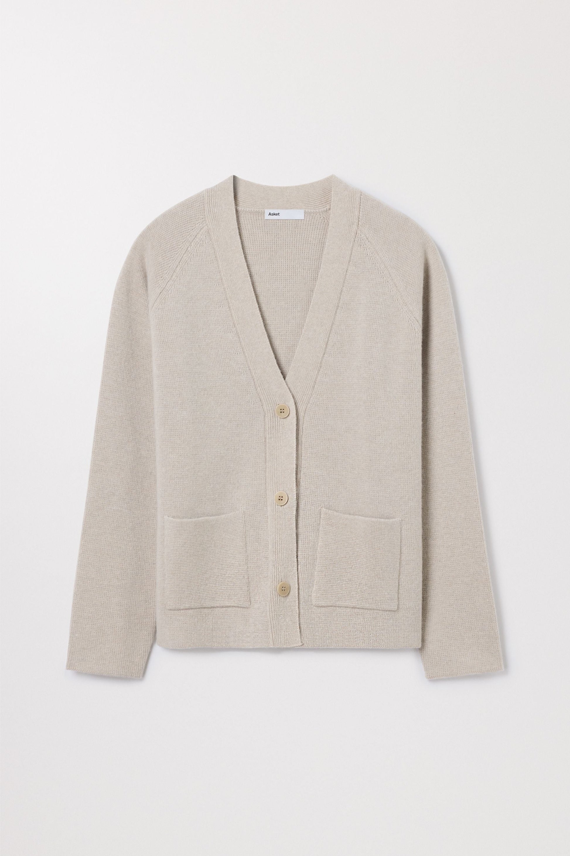 A relaxed wool cardigan made from 100% recycled wool in a compact Milano knit for warmth and structure. Featuring soft-shaped raglan shoulders, tonal corozo buttons and two front pockets — a timeless wardrobe staple. Milled in Italy and knitted in Romania.